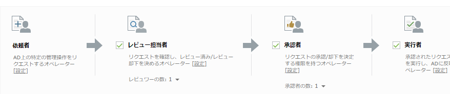 | ステップ2 | レビュー担当者 | オペレーター、Active Directoryのユーザー、上司(manager)として設定されたActive Directoryのユーザー |