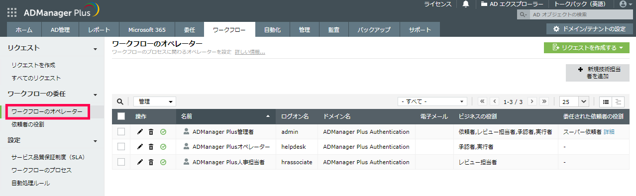- ワークフローを担当するオペレーターを新規追加、または編集します。