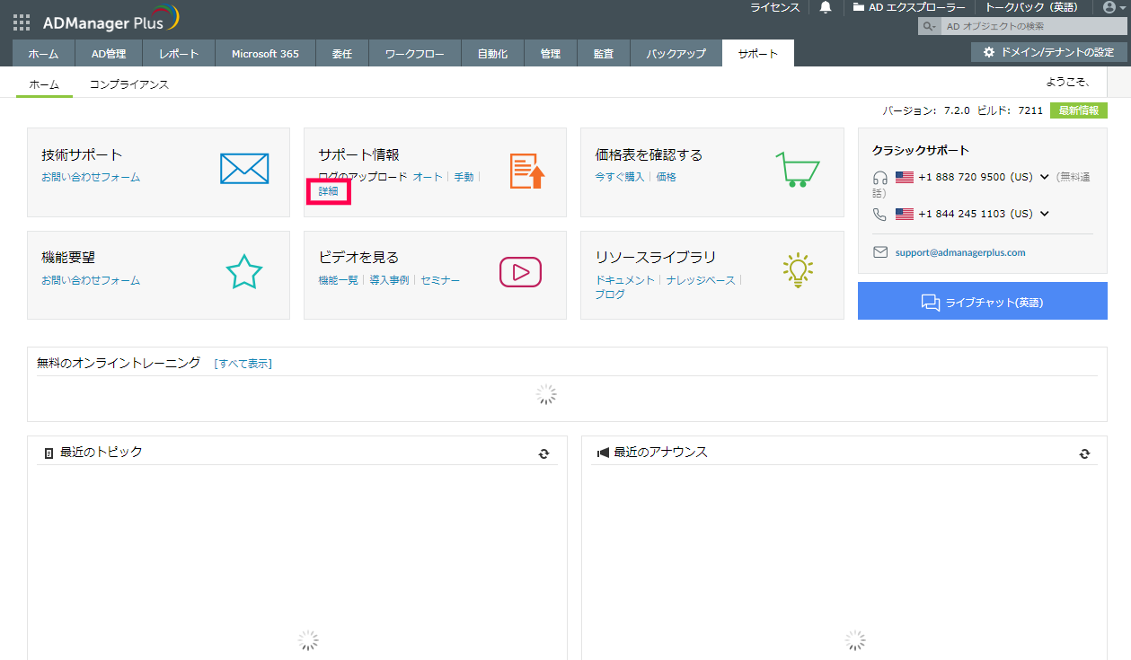 8. 現在ご利用のADManager Plusと同じビルドの新規インストーラーを取得