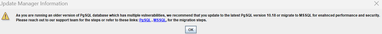 搭載されているデータベースがPostgresSQL バージョン9.2またはバージョン9以前のADManager Plus