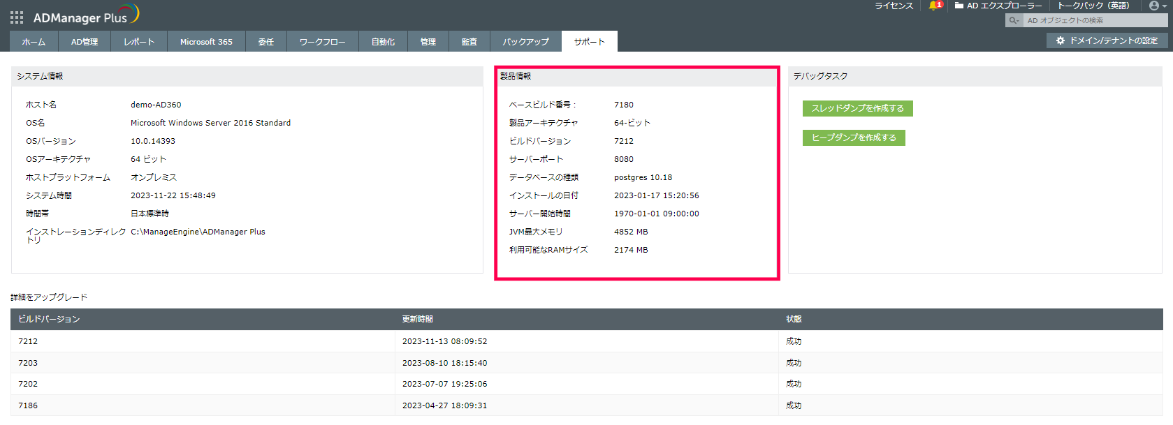 <ADManager Plus_インストールディレクトリ>\conf\product.confファイル内からでも確認できます。