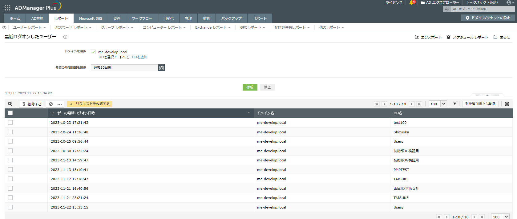 ADManager Plusには、最終ログオン時間を確認できるレポートがいくつか存在します。