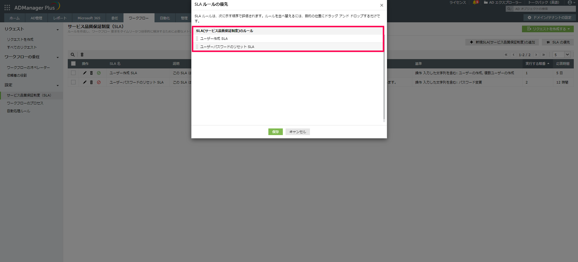 ・変更優先度:SLA違反時のワークフローリクエストの優先度を選択