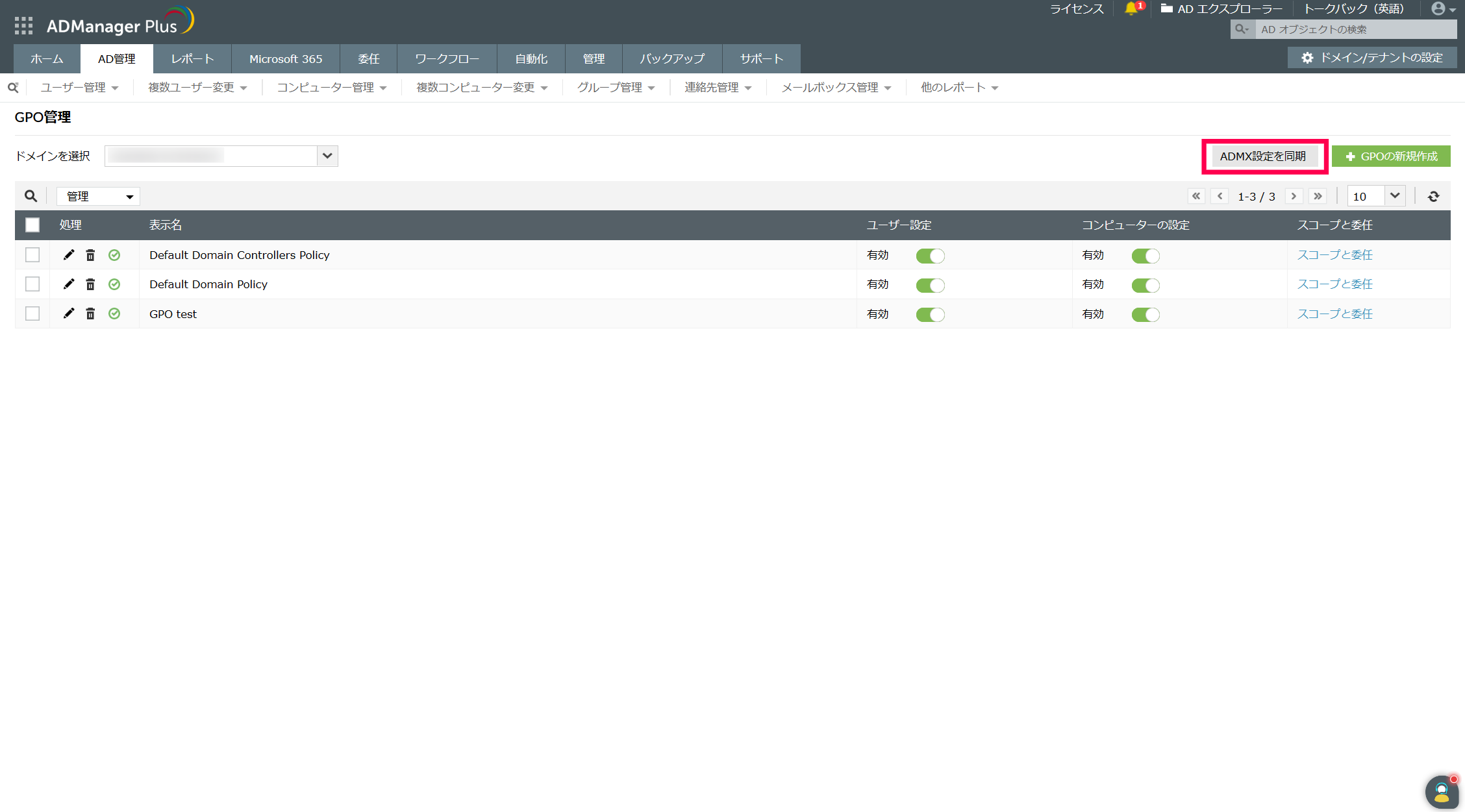管理用テンプレート(ADMXファイル)をADManager Plusに反映する手順