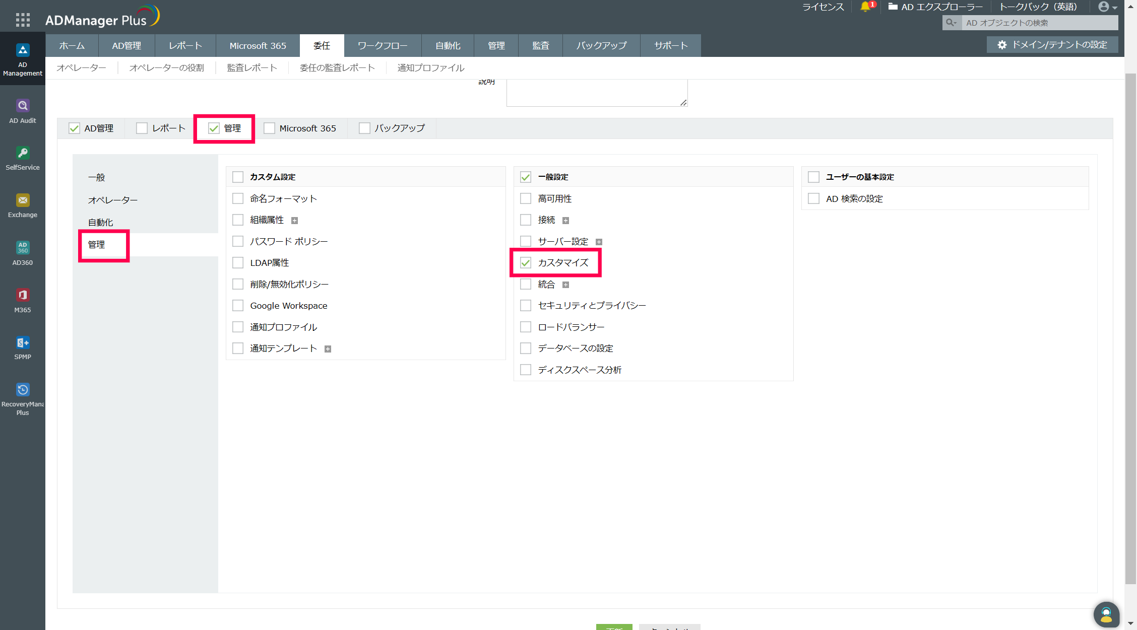 - [管理]タブ→[管理]→「カスタマイズ」にチェックを入れ、「役割の名称」に任意の名称を入力し、[保存]をクリックします。