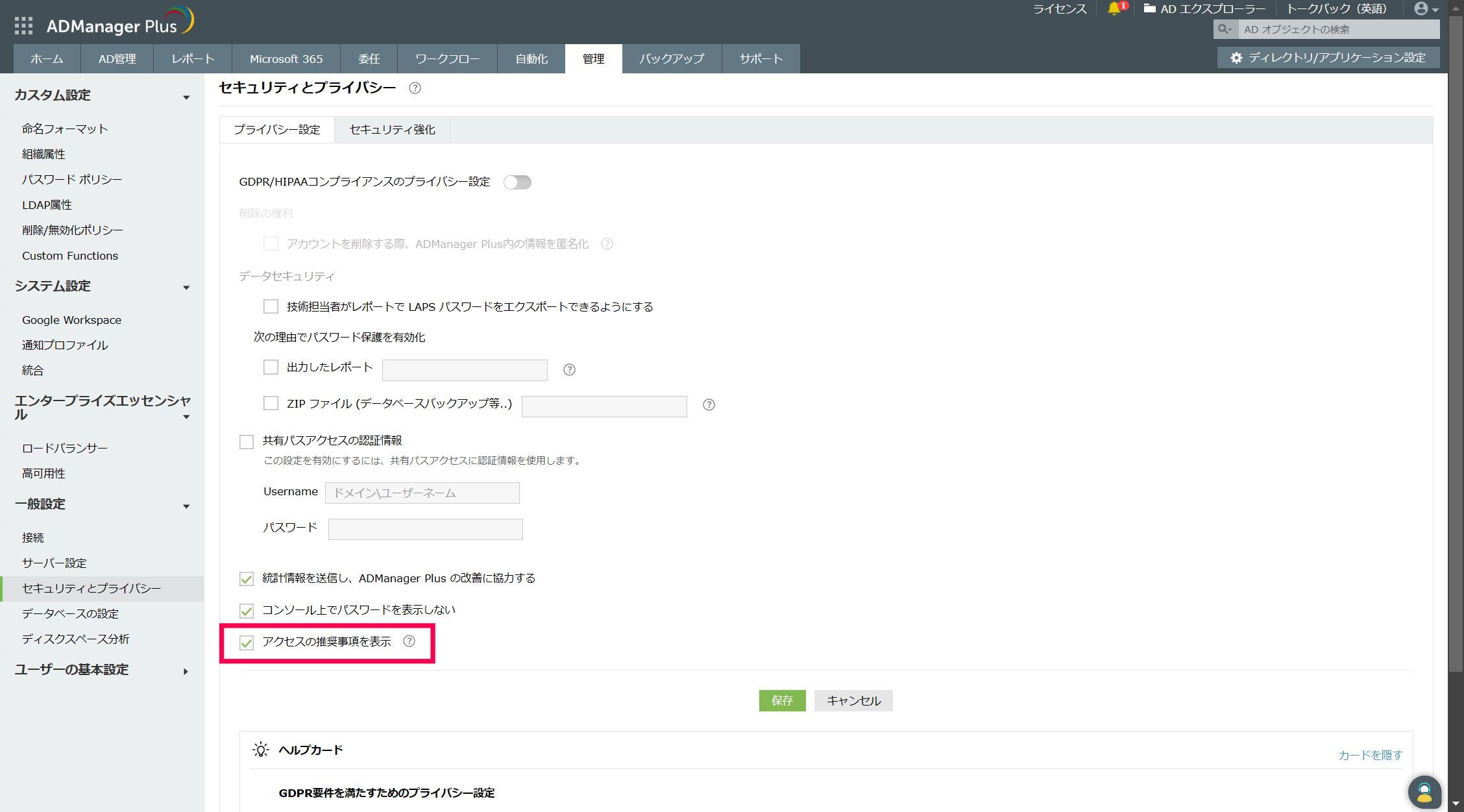 本ページでは、ADManager Plusのビルド8002に追加された新機能「アクセスの推奨事項」について説明します。