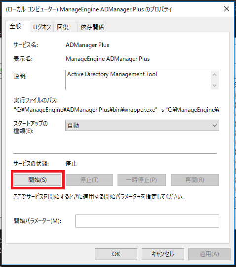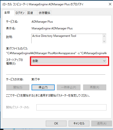 サービス起動を実行するとサーバーを起動した際にADManager Plusが自動で起動されます。