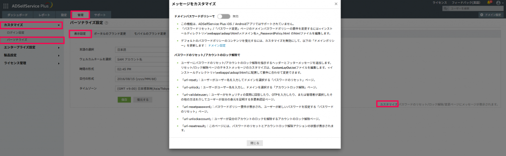 本ナレッジでは、「パスワード変更」および「パスワードリセット」実行時に表示されるドメインのパスワードポリシーをカスタマイズする方法を紹介します。