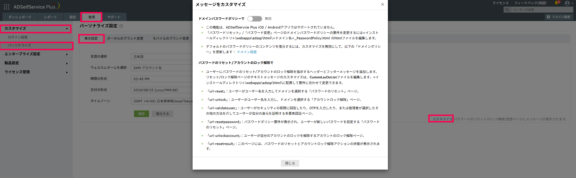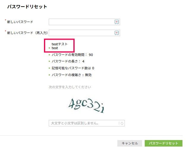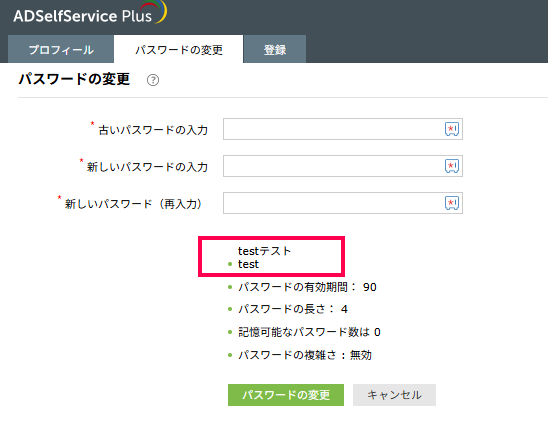 本手順は、「パスワードポリシー強化」機能を使用しかつ、ADSelfService Plusで設定したパスワードポリシーをユーザーに表示している場合は適用されません。