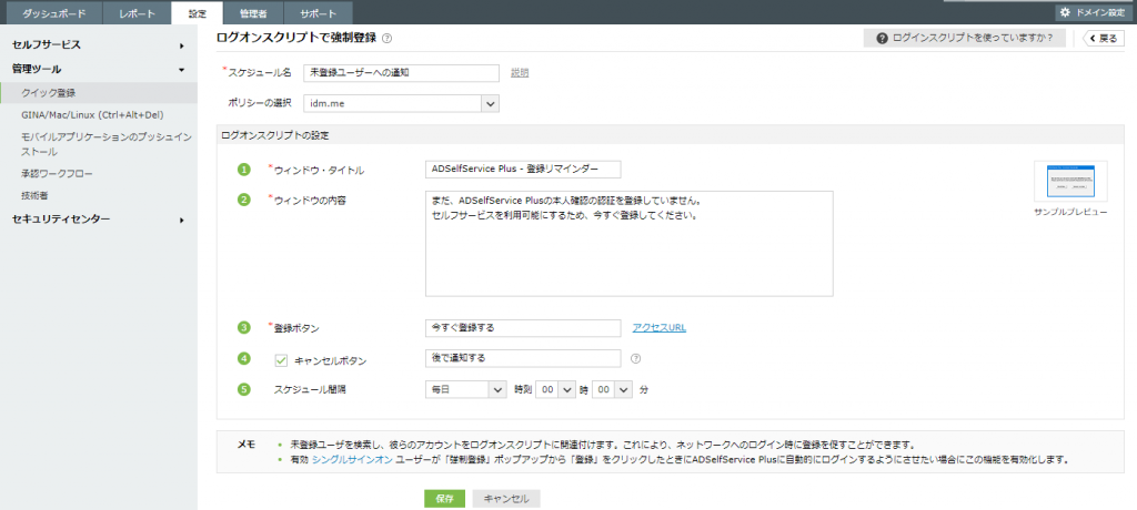 未登録ユーザーに対して、ADSelfService Plusの認証登録を催促するためのスクリプトです。
