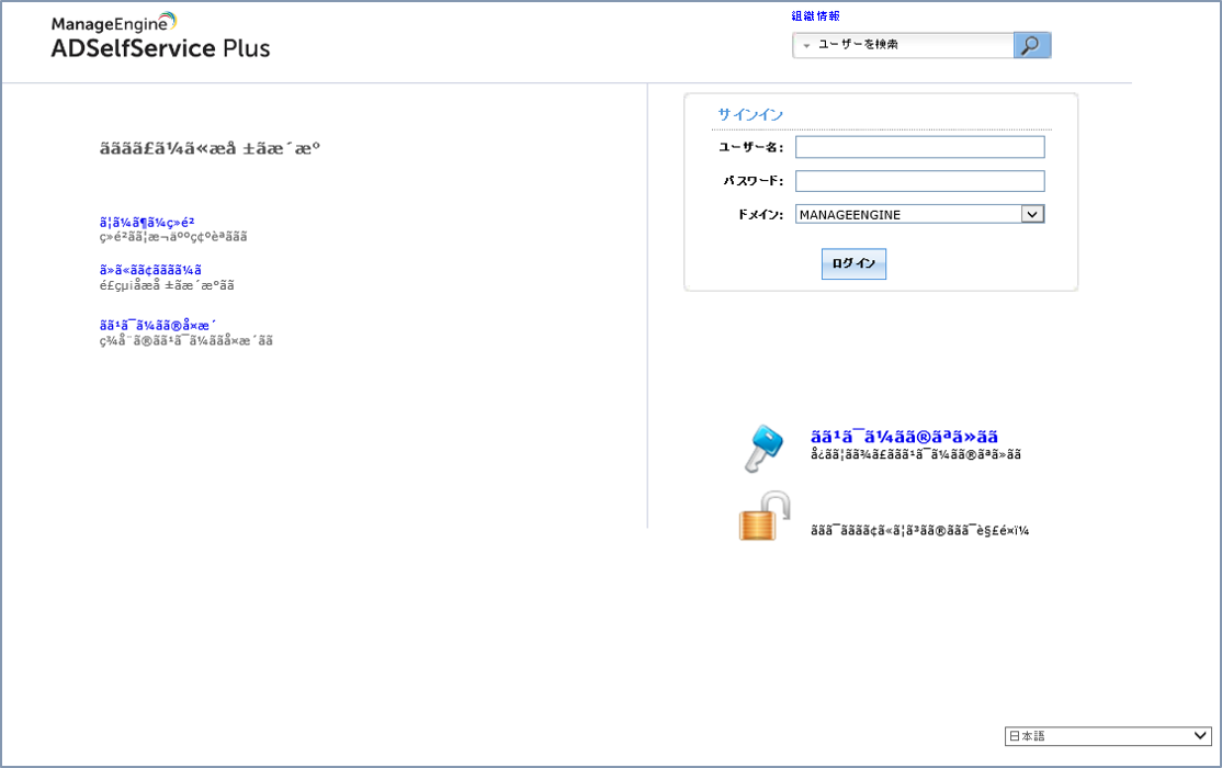 カスタマイズしたログイン画面が以下の画像のように文字化けします。