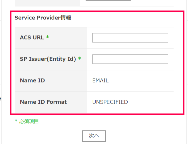 SP Issuer(Entity Id)(必須):上記と同様の値を入力