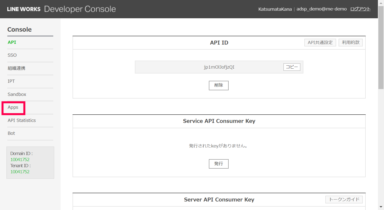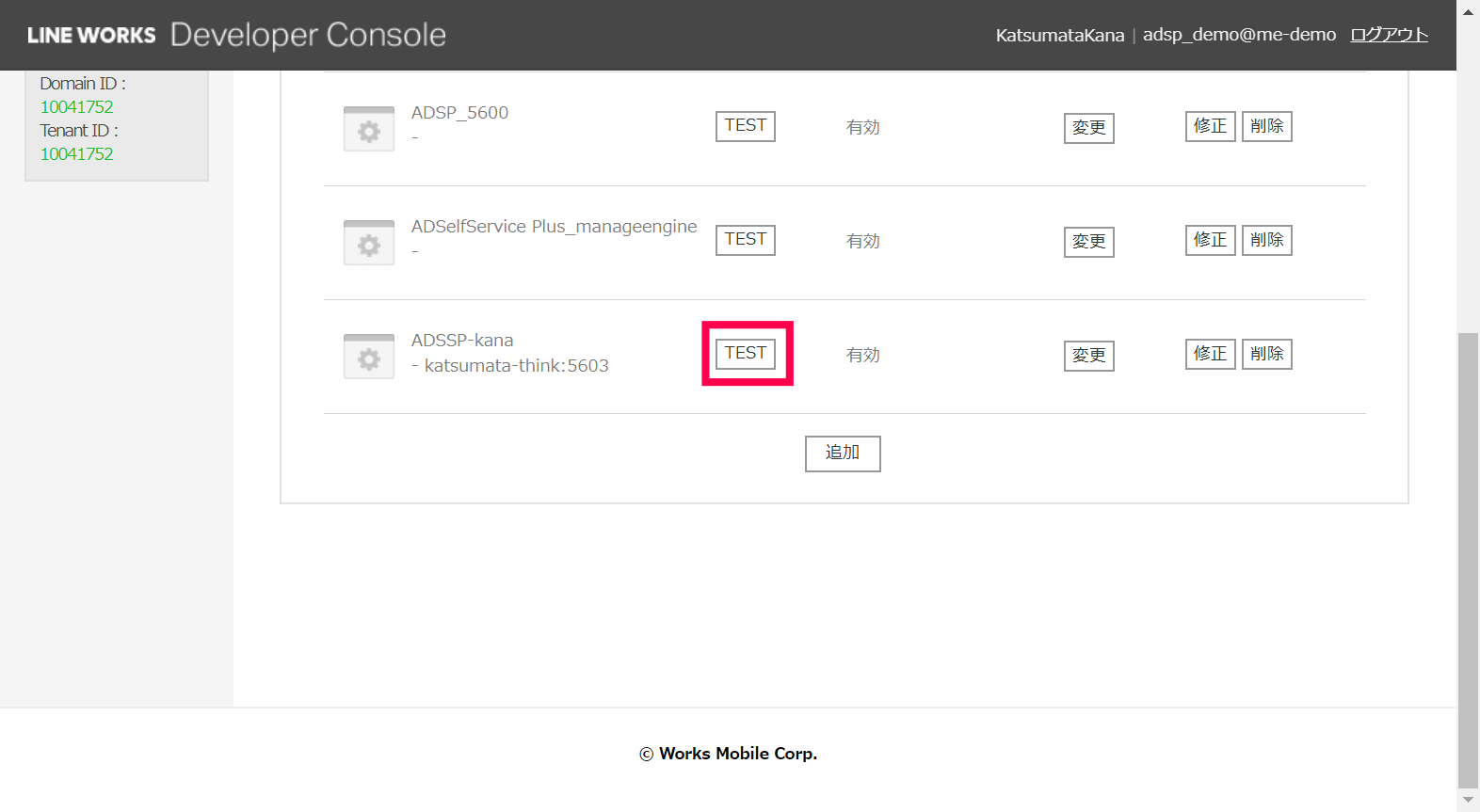 値:<ユーザー名>@<LINE WORKSドメイン名>