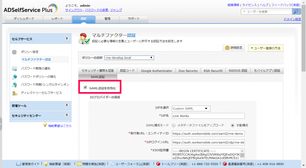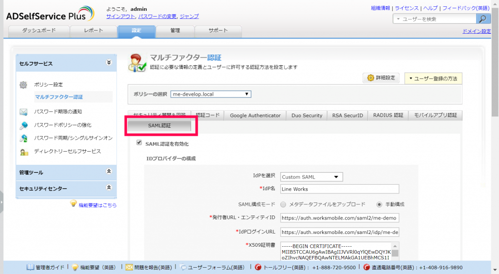 A. ADSelfService PlusでSAML認証に必要な情報を確認