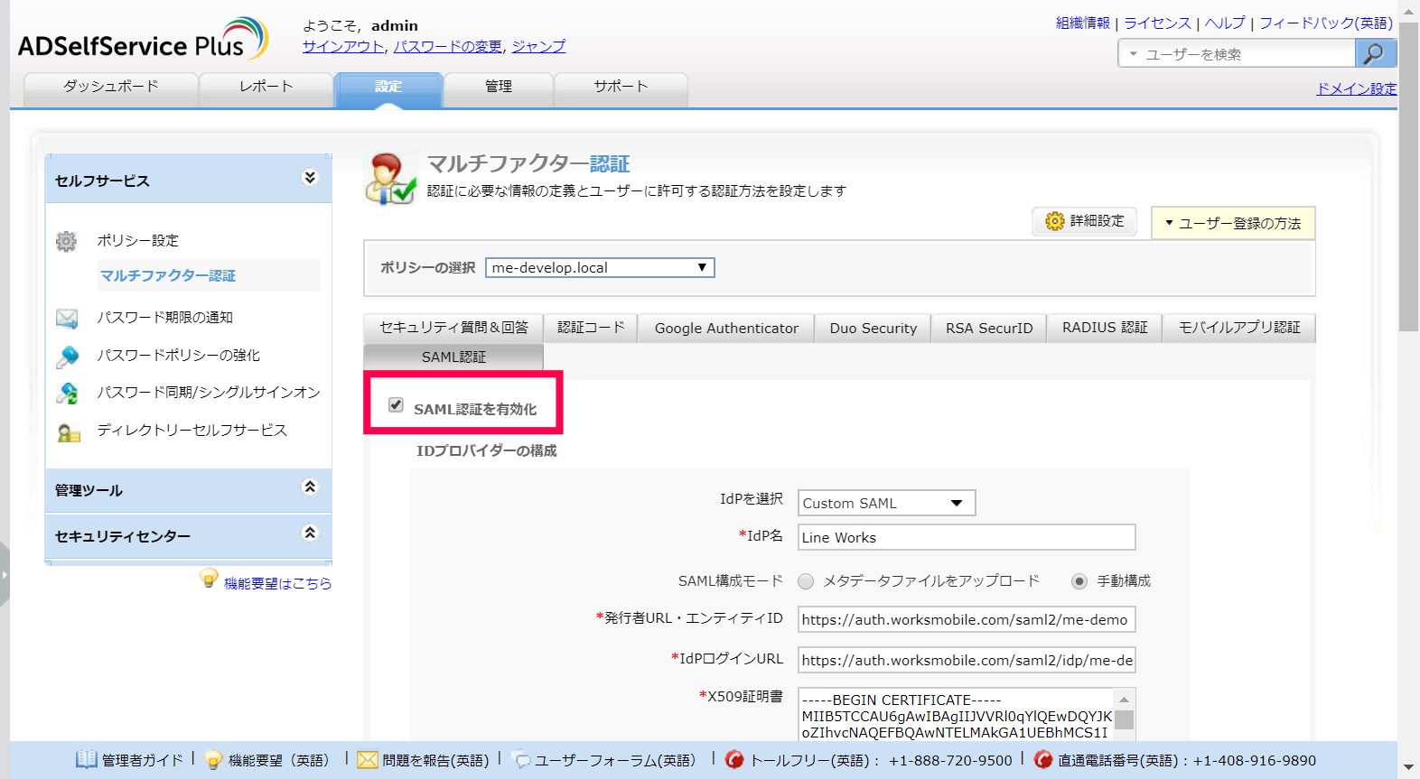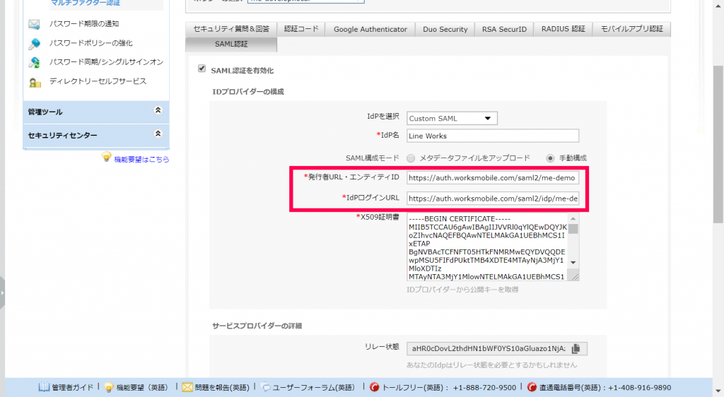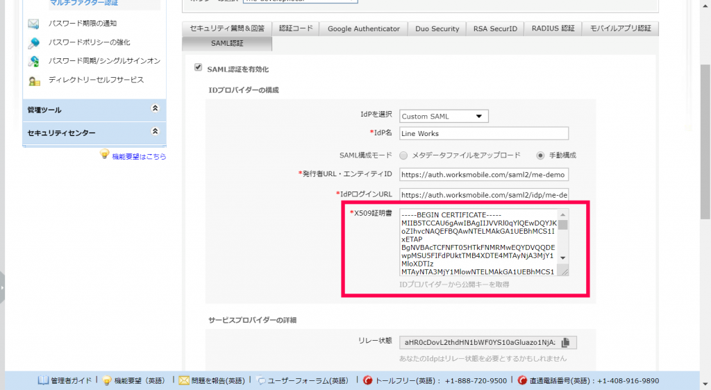 マルチファクター認証のSAML認証の設定方法【LINE WORKS編】