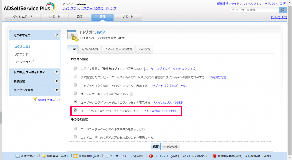 9. [ユニークなAD 属性でのログインを有効にする]オプションを有効化