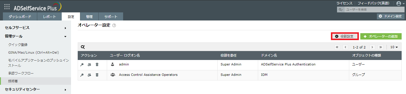 オペレーターの役割(権限)付与