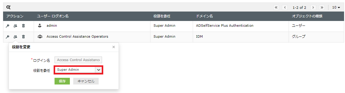 - 役割を設定/変更します。