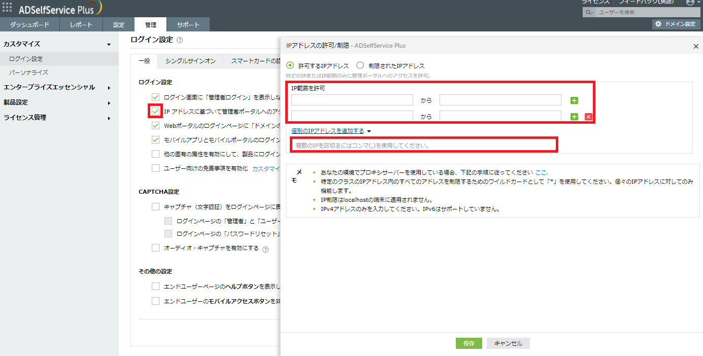 この機能を有効化することで、より安全にADSelfService Plusをご利用いただけます。