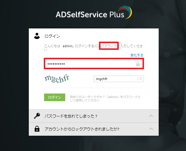 ログイン方法(ビルド6109以降) 作成日:2021年8月26日 | 更新日:2021年9月17日 アドミンガイド ユーザーガイド 本ナレッジでは、ADSelfService Plusへのログイン方法についてご紹介します。 ※対象ビルドは、ビルド6109以降です。 ログイン方法 ADSelfService Plusのログイン画面へアクセスします。 ユーザー名を入力し、[ログイン]をクリックします。 パスワードを入力し、[ログイン]をクリックします。 上記のログイン手順は、管理者およびエンドユーザーに共通の方法です。 このナレッジの総閲覧回数: 928 関連ナレッジ: SMS設定とSMS送信ライセンスの適用手順 エンドポイント多要素認証についての解説と設定手順 管理者ログインの許可/制限 オペレーターの役割(権限)付与
