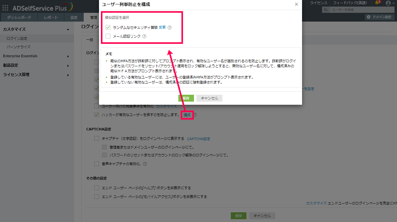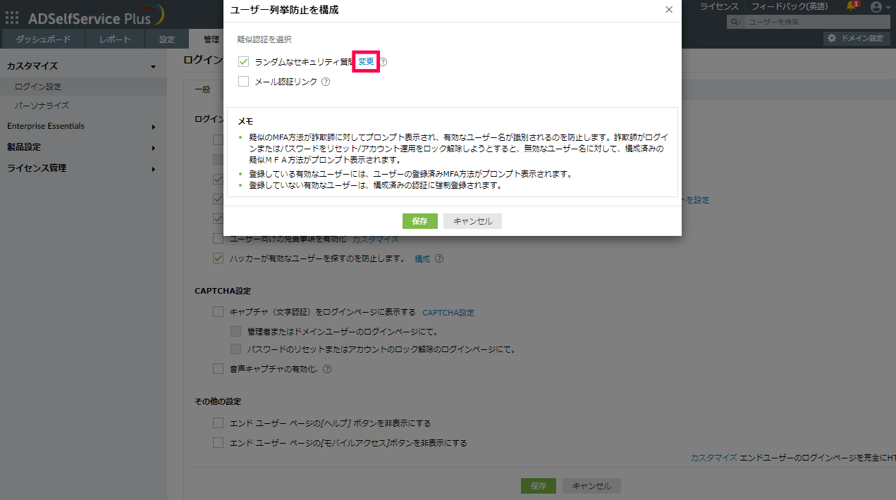 - [管理]タブ-->[カスタマイズ]-->[ログイン設定]をクリック