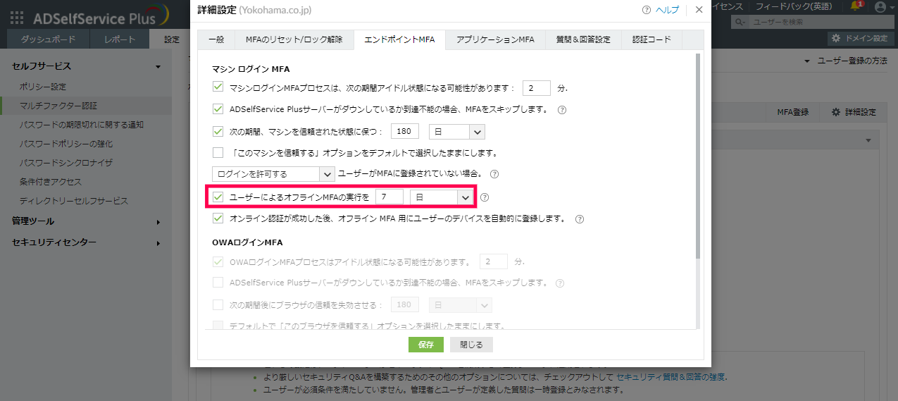 本ページは、本社ページ(How to enable offline MFA in ADSelfService Plus)を参照しております。
