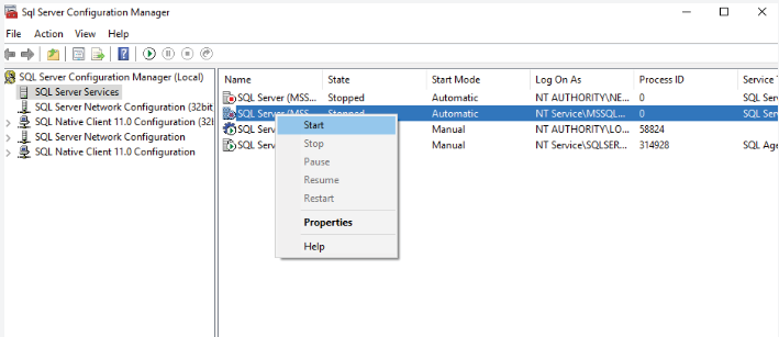 - SQL Serverのサービス→ SQL Server Browserに進みます。SQL Server Browserが起動していることを確認します。