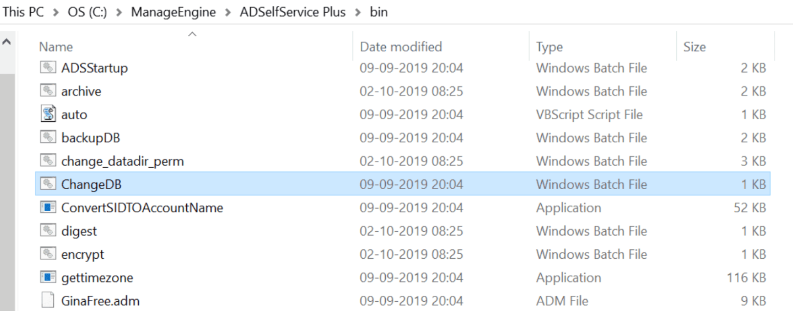 - <ADSelfService Plusインストールディレクトリ>\binに移動します。