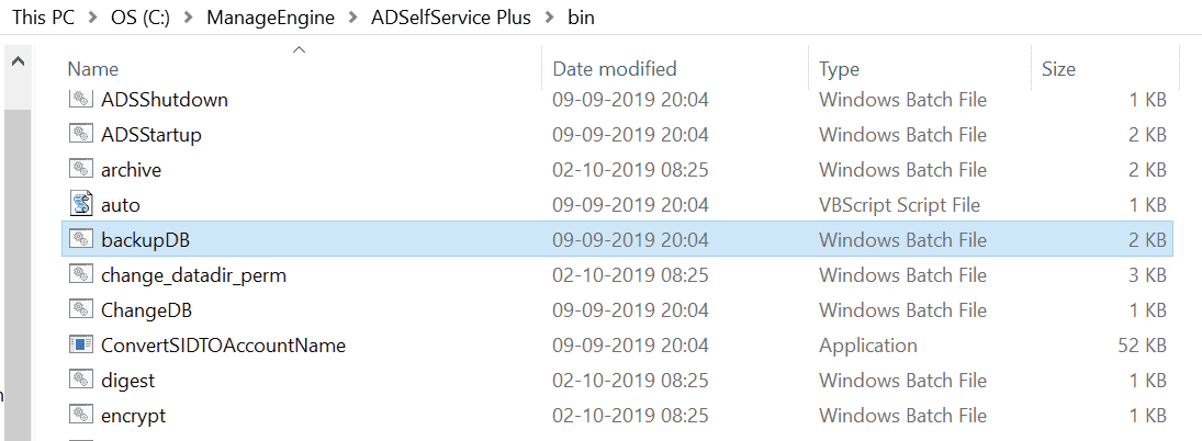 ステップ1 ADSelfService Plusデータベースのバックアップ