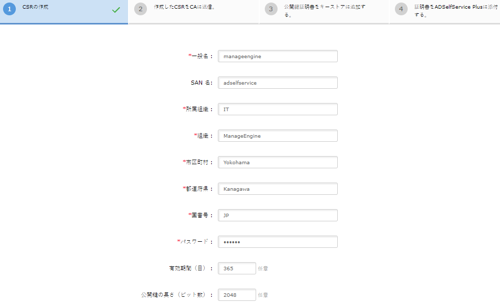3. 必要な情報を入力後、[CSRを生成]を クリックします。