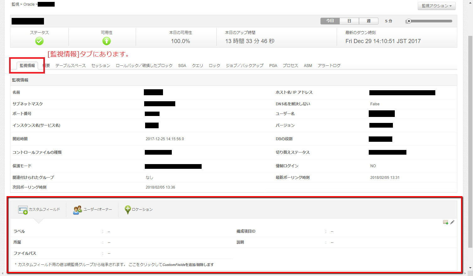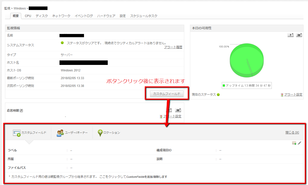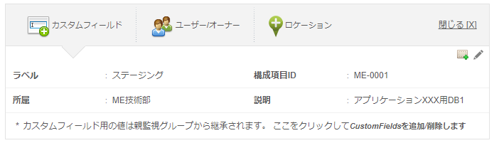 各監視ページ毎、または監視グループ毎にカスタムフィールドを設定できます。