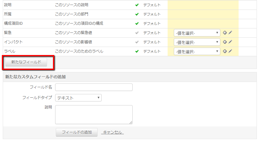 既存で存在するフィールドの他、任意の新たなフィールドを作成できます。