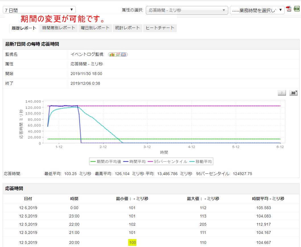 出力結果のうち、数値属性のデータはレポートを有効にすることで、他のパフォーマンス監視と同様にレポートとして表示/出力することが可能です。