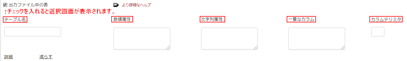 スクリプトの実行で出力される結果が表形式の場合、名前、文字列・数値などの行属性、区切り文字や、一意キー制約の属性について指定します。
