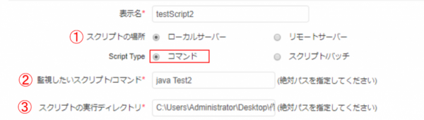 2 . 「監視したいスクリプト/コマンド」には監視で実行するスクリプトファイル名、またはコマンドを入力してください。