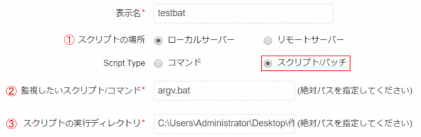 3 . 「スクリプトの実行ディレクトリ」には監視で実行するスクリプトのディレクトリと同じ階層の絶対パスを入力してください。