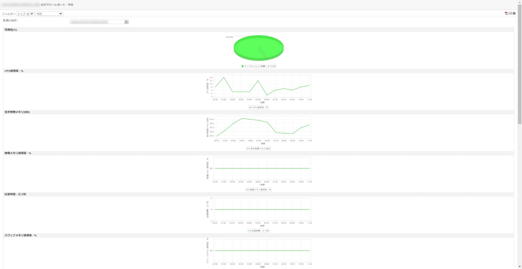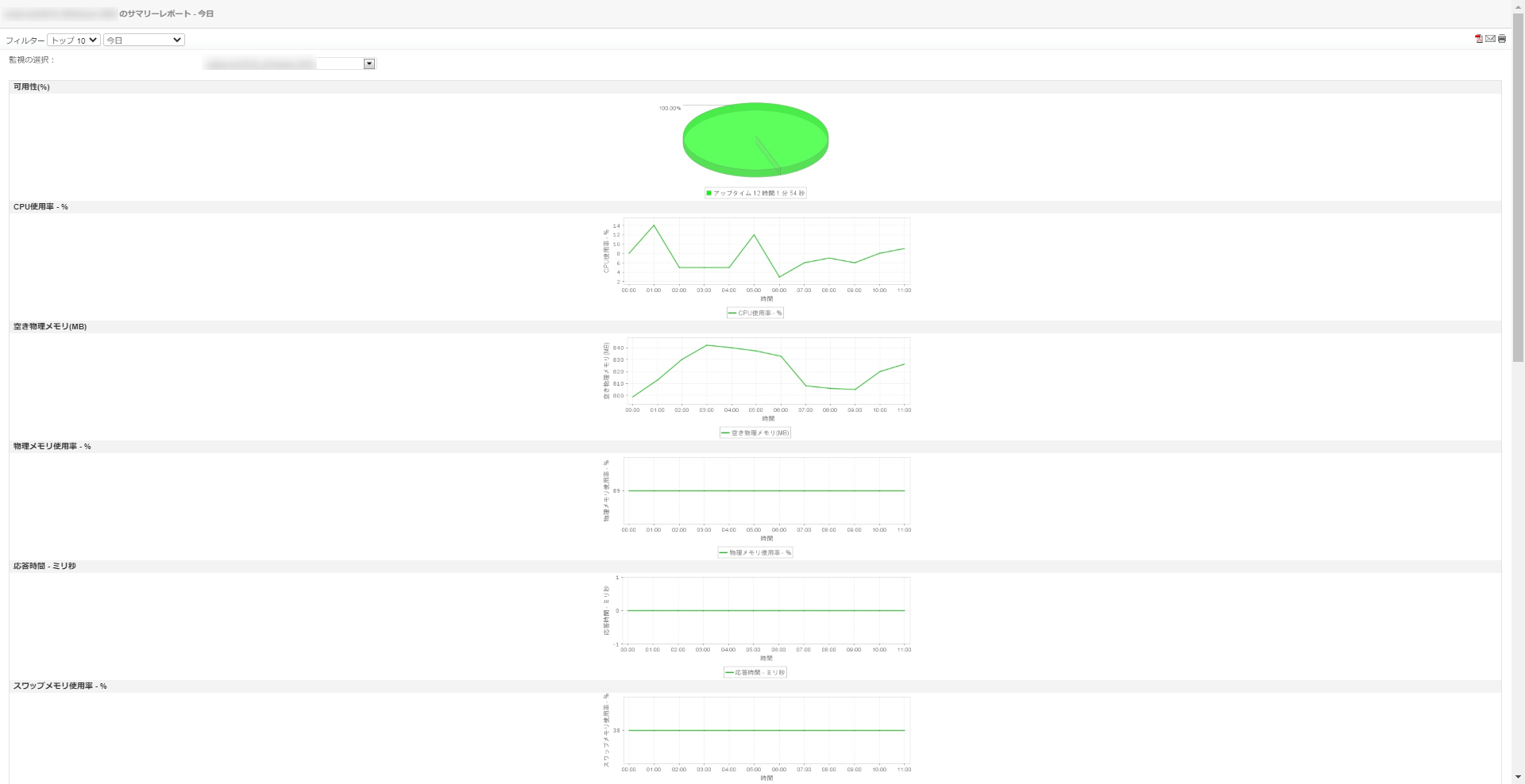 傾向分析レポートでは、主に各監視対象で[概要]タブから確認できる項目を含んだレポートが生成されます。