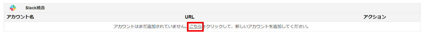 2.Slack統合欄の[こちら]をクリックします。