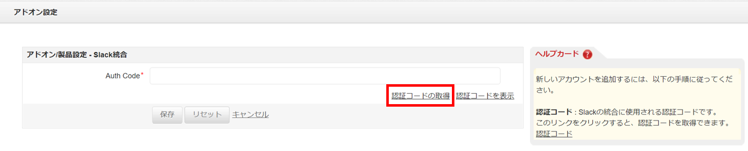 3.Auth Code入力欄右下の[認証コードの取得]をクリックします。