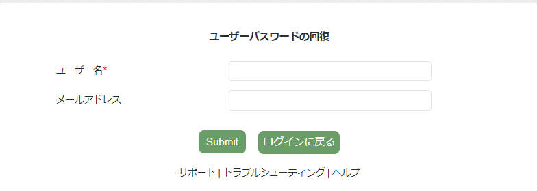 - ユーザー名とメールアドレス(※)を入力し、[Submit]をクリックします。