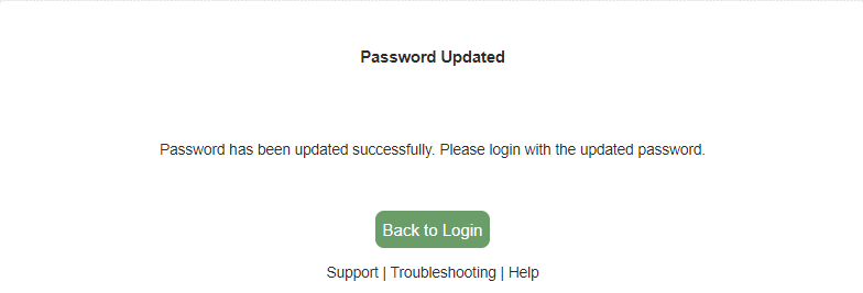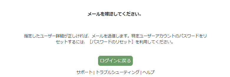 - パスワードのリセットが成功すると、以下のメッセージが表示されます。