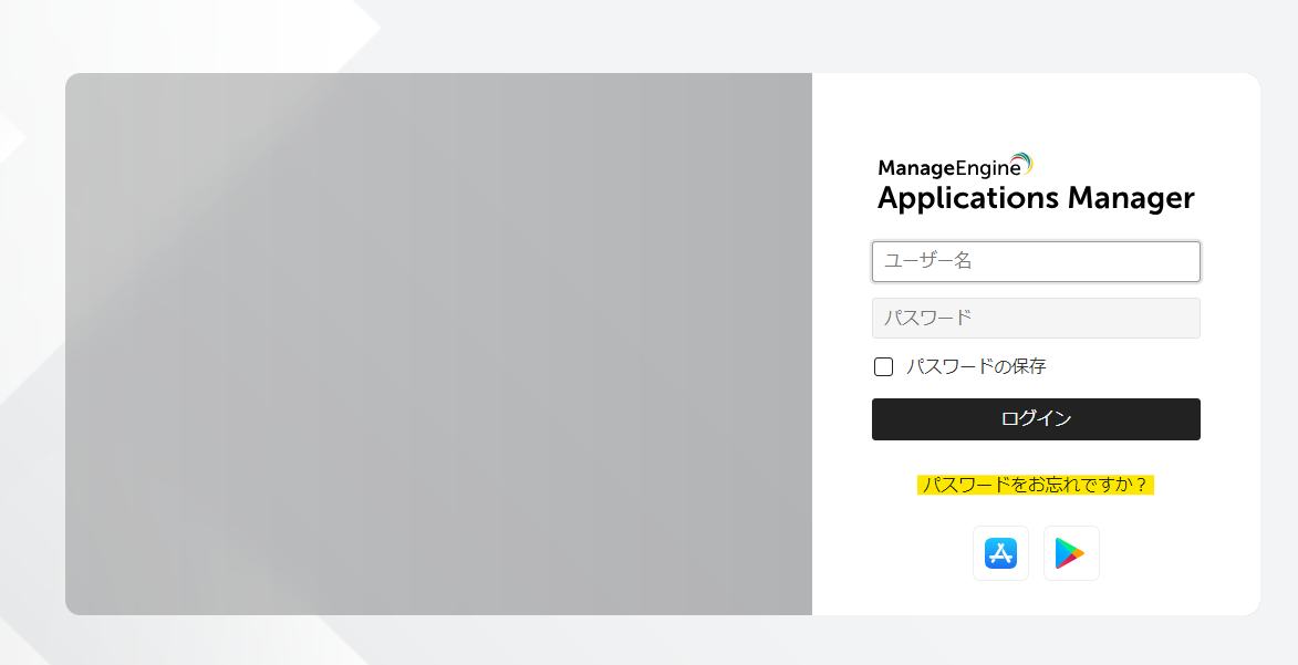 - Applications Manager Webクライアントを開き、[パスワードをお忘れですか?]をクリックします。