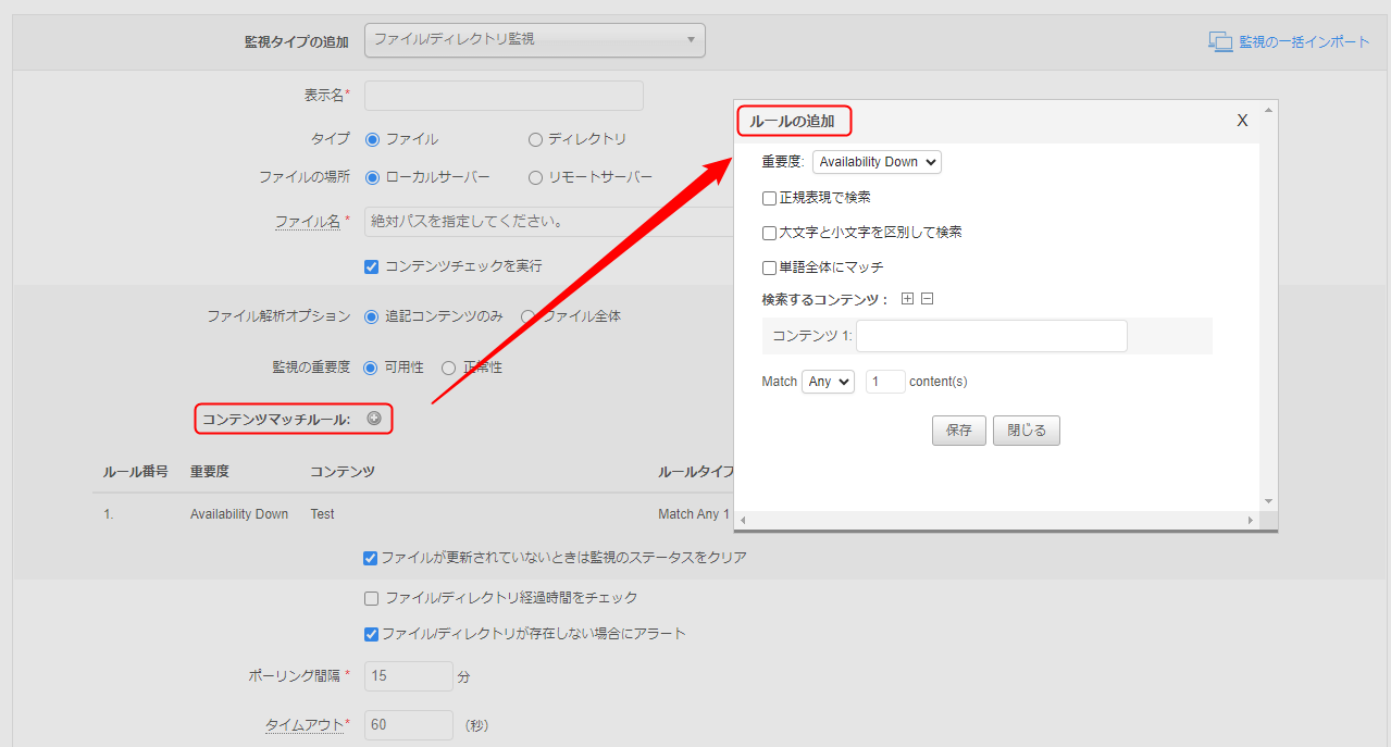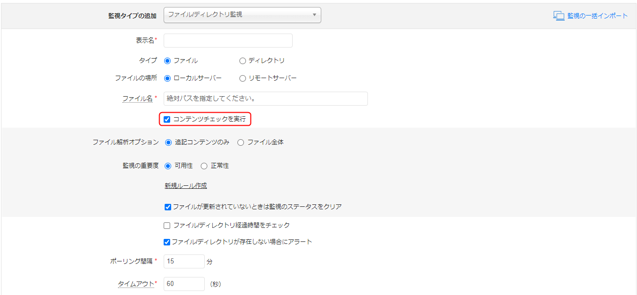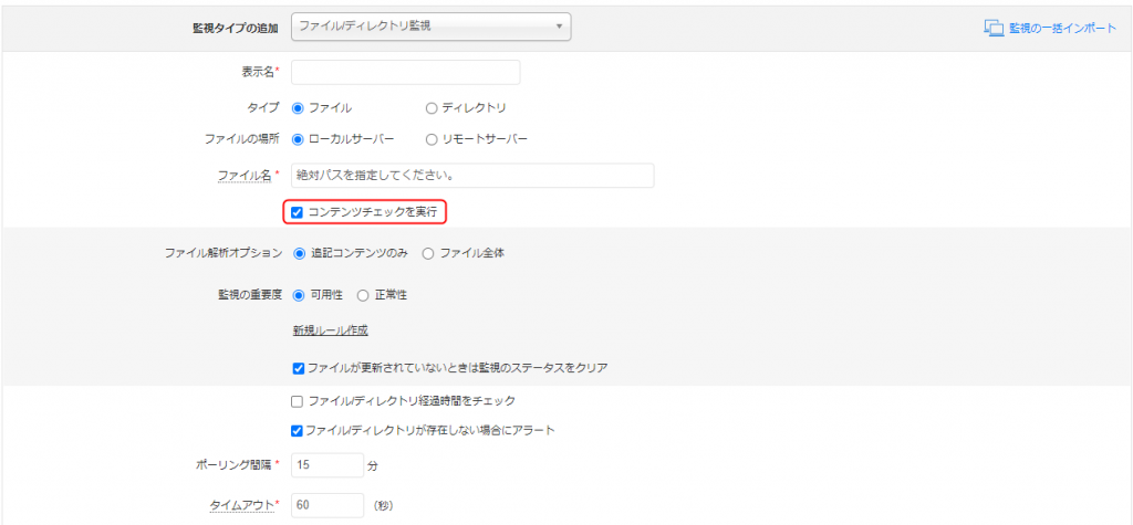 本ナレッジでは、監視タイプ「ファイル/ディレクトリ監視」を追加する際に、
