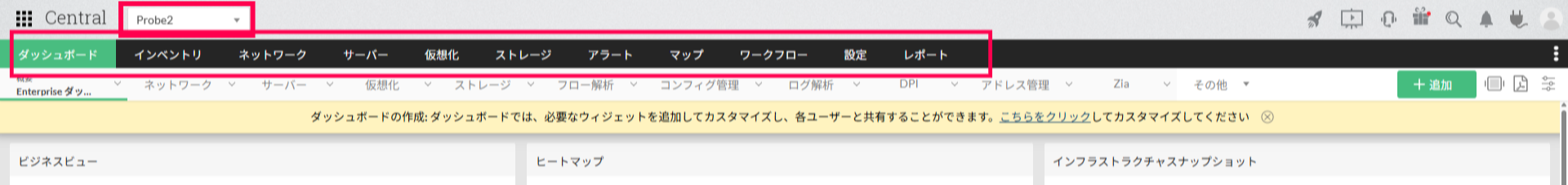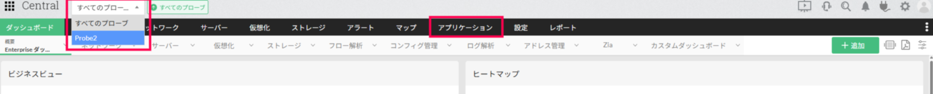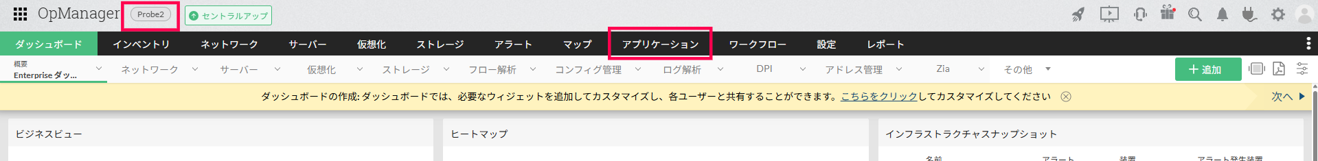 セントラルサーバーからプローブサーバーのOpManagerUIを表示すると[アプリケーション]タブが表示されない
