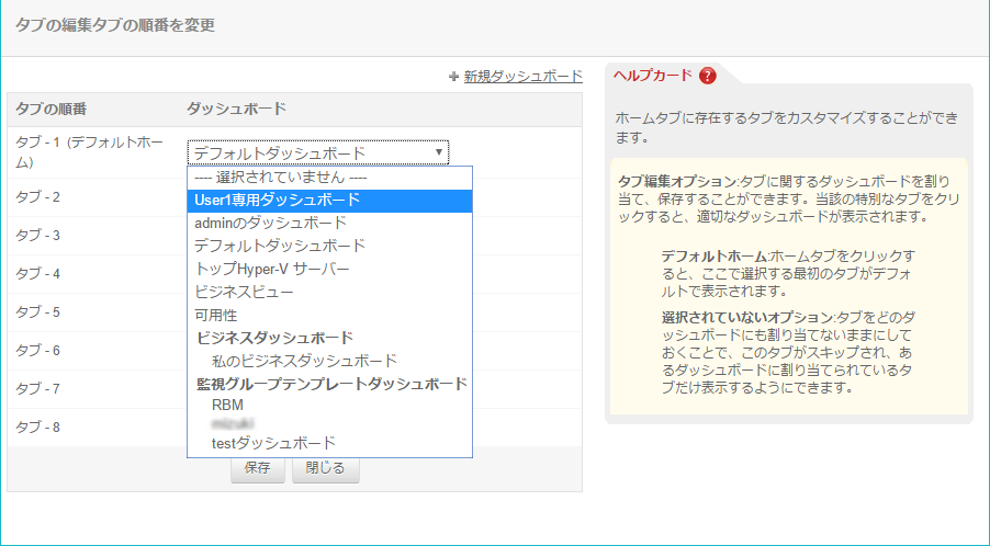 2. [タブ1 - デフォルトホーム]のドロップダウンリストから、