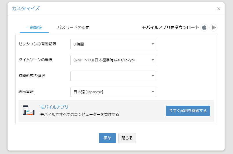 表示言語/タイムゾーン/時刻の表示形式/セッション有効時間を変更する方法