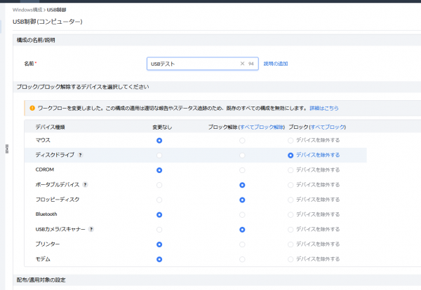 - 配布/適用対象の設定 において、適宜配布対象を選択します。