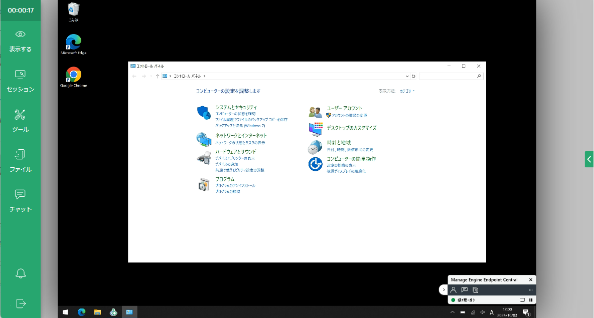 - リモート制御(リモートコントロール): 管理対象コンピューターの画面を共有し、遠隔操作を行う機能です。