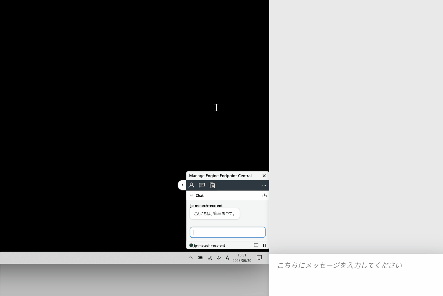 この記事では、Endpoint Central Cloudのリモート制御機能でチャット機能を使用する際の不具合、およびチャットを日本語で送信するための回避策について説明しています。