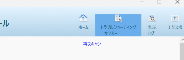 以下では、トラブルシューティングツールを実行後の「ホーム」タブ(上記手順の「5.」の状態)の内容について説明します。